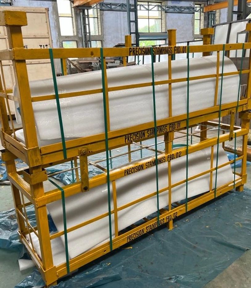 Post insertion, the final inspection of the component is carried out on a 3000mm long CMM, after which the component is packaged with the utmost care, into metal crates (shown below) in order to prevent any kid of damage during shipping.